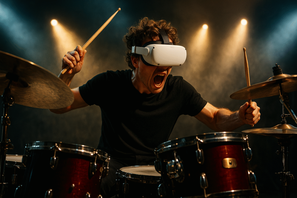VRock Català fusiona música i tecnologia per oferir una realitat virtual immersiva on els participants es converteixen en bateria de concerts llegendaris, creant moments inoblidables i virals.